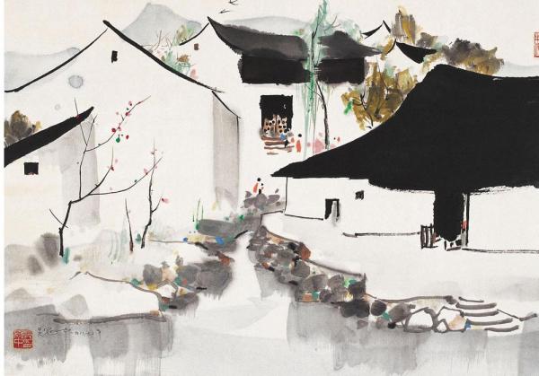 在滿足了基本需求后,孟浩凡才開始考慮,如何為這座古鎮(zhèn)保留傳統(tǒng)江南民居的神韻,又體現(xiàn)出現(xiàn)代學(xué)的美感和創(chuàng)意。他想到了畫家吳冠中。孟浩凡說,比起具象的元素,他更多考慮的是保留“氣質(zhì)”?!氨热缯f你看這色調(diào),色調(diào)是白墻綠瓦,中間有一些灰色系的這種磚,都是老色調(diào)的基底給我們的感覺。這種壓頂?shù)木€條,像吳冠中的畫,都是很抽象的嘛。畫江南民居,他畫出來很抽象的藝術(shù)畫,沒有具象的符號(hào),但是你一看這個(gè)東西它就是江南的,因?yàn)槲蓓數(shù)倪@種曲線、線條,勾勒出了江南的這種俊秀?!?/p>