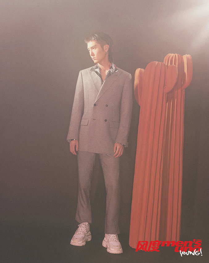 ??? 近日,演員盛一倫登上某雜志12月刊封面, 顛覆了過(guò)往風(fēng)格拍攝了一組光影和空間相互交錯(cuò)的超現(xiàn)實(shí)風(fēng)格寫(xiě)真;莫西干式長(zhǎng)發(fā)造型搭配日系復(fù)古懷舊西裝,光影渲染下的盛一倫棱角分明,整組圖片充滿(mǎn)年代感。