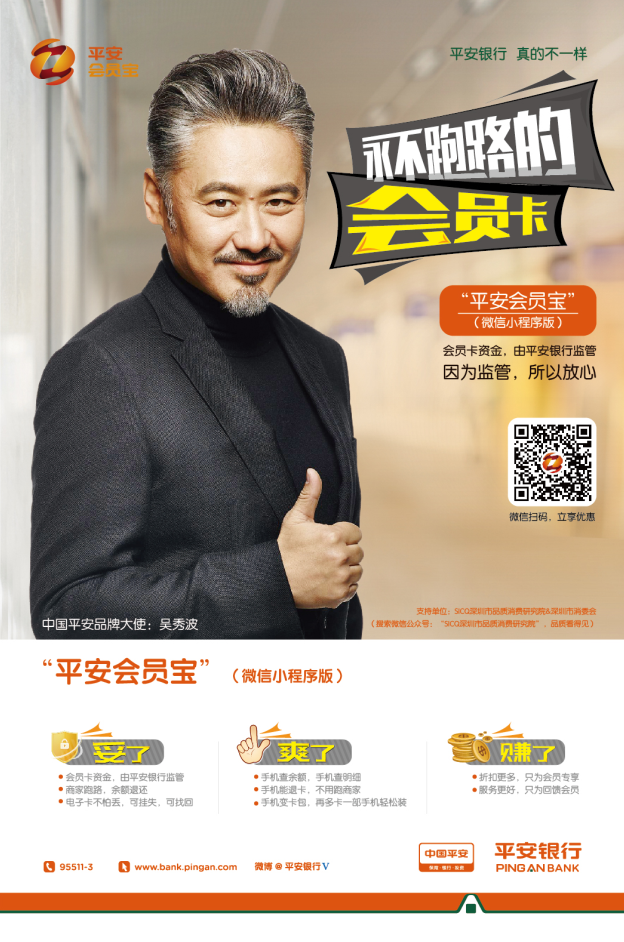 目前,“平安會(huì)員寶”已經(jīng)得到了社會(huì)各界的高度關(guān)注和大力支持。深圳市消費(fèi)者委員會(huì)、深圳市品質(zhì)消費(fèi)研究院高度肯定“平安會(huì)員寶”以全新的模式化解了充值型會(huì)員卡的難題,還將在深圳市消委會(huì)發(fā)起的“好人舉手”活動(dòng)中與“平安會(huì)員寶”進(jìn)行深度合作。