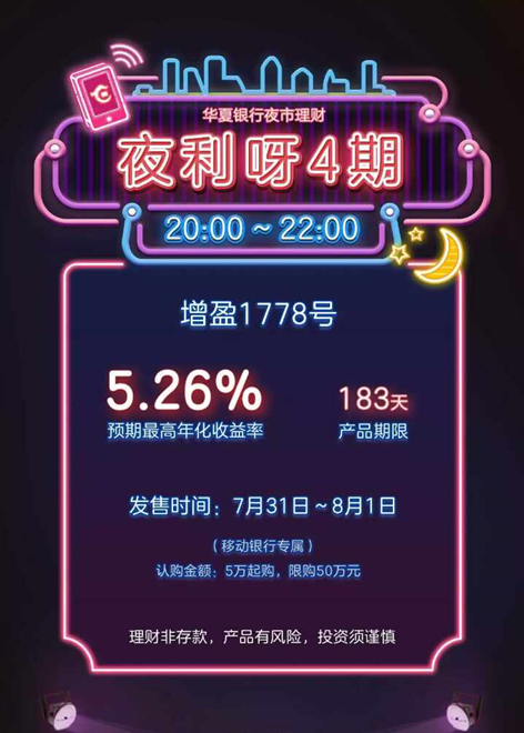 盛夏一到,夜市開始紅火,銀行也來湊熱鬧。華夏銀行推出預(yù)期年化收益率5.26%的“夜市”理財產(chǎn)品。