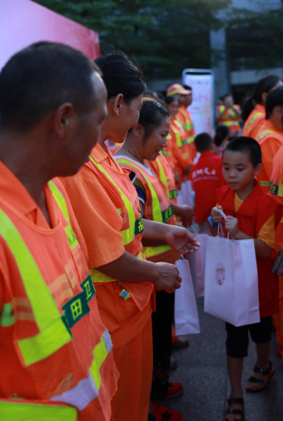 活動(dòng)現(xiàn)場,深圳市關(guān)愛辦、中國銀行深圳分行代表主辦方還向現(xiàn)場30余位環(huán)衛(wèi)工人贈(zèng)送了早餐、餐券及工作馬甲等物資。