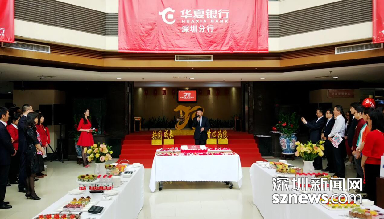 此外,為慶祝華夏銀行深圳分行成立20周年,各營業(yè)網(wǎng)點同時進(jìn)行了精心裝扮,并準(zhǔn)備了美味的糕點和水果,與來行辦業(yè)務(wù)的客戶們共同分享這一刻的喜悅之情。