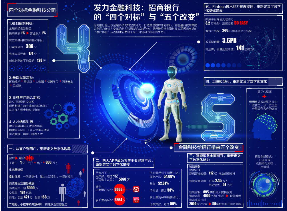 相關(guān)數(shù)據(jù)顯示,金融科技正讓招行再一次全面“進(jìn)化”。盡管這種“進(jìn)化”短期內(nèi)可能反映不到財(cái)務(wù)報(bào)表上,但長期來看將決定招行未來的競爭優(yōu)勢(shì)。