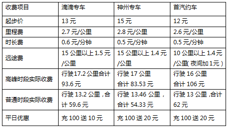 從各家平臺(tái)的價(jià)格列表來(lái)看,同樣選擇20萬(wàn)級(jí)別專車(chē),滴滴起步價(jià)為13元,普通時(shí)段里程費(fèi)為2.7元/公里,時(shí)長(zhǎng)費(fèi)為0.6元/分鐘,神州起步價(jià)為15元,普通時(shí)段里程費(fèi)為2.8元/公里,時(shí)長(zhǎng)費(fèi)為0.5元/分鐘,首汽起步價(jià)及里程費(fèi)分別為12元與2 .6元/公里,在普通白天時(shí)段綜合對(duì)比,這里三家都沒(méi)有呈現(xiàn)特別突出的價(jià)格優(yōu)勢(shì)。