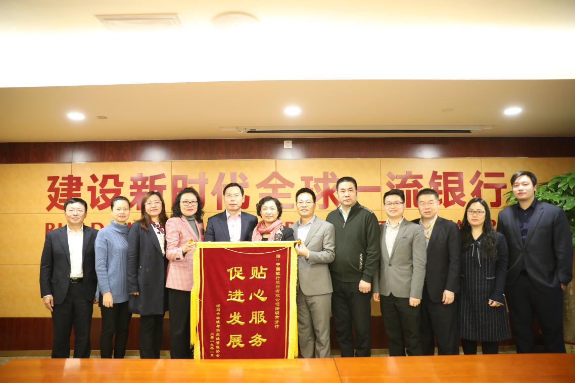 會(huì)后,深圳市物流與供應(yīng)鏈管理協(xié)會(huì)秘書(shū)長(zhǎng)鄭艷玲女士代表會(huì)員企業(yè)向深圳中行贈(zèng)與了“貼心服務(wù)、促進(jìn)發(fā)展”錦旗,對(duì)深圳中行近年來(lái)對(duì)促進(jìn)供應(yīng)鏈金融行業(yè)發(fā)展、服務(wù)中小微民營(yíng)企業(yè)作出的貢獻(xiàn)表示感謝,對(duì)中國(guó)銀行全方位的金融服務(wù)給予了高度認(rèn)可。