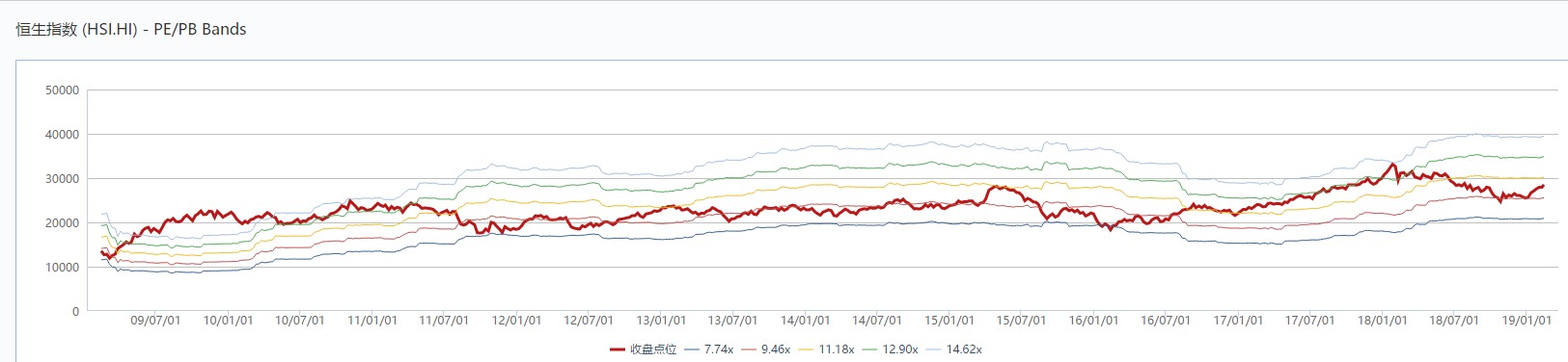 以上內(nèi)容僅僅是本輪反彈的拆解,如果將視野放到年內(nèi),經(jīng)過了2018年的殺估值(從14.62倍到9.4倍,35%),哪怕最悲觀的情況下,估值從目前的10.55到極端低估的7.74,估值的下殺空間不過26.6%,中性情況下,考慮到企業(yè)盈利盈利的增長,恒指下行的空間在目前環(huán)境下也很難超過10%,沒有重大事件的影響,恒指全年預計會在這個區(qū)間內(nèi)波動,但個股會出現(xiàn)比較明顯的分化,賺錢效應要遠遠強于2018年,若是恒指出現(xiàn)恐慌性的調(diào)整,優(yōu)質(zhì)個股反而是趁亂買入的好機會。(智通特供)