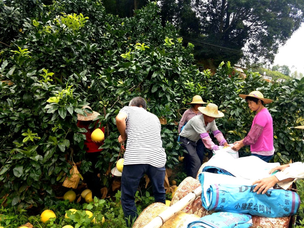 選對路子進展加快,脫貧攻堅喜獲成效。2018年金秋時節(jié),陂湖村的蜜柚喜獲豐收。走進陂湖村的田野,在碧綠的柚樹林中,沉甸甸、黃燦燦的蜜柚掛滿了田間山頭。孰料九月蜜柚采摘時,廣東遭遇五十年難遇的強臺風(fēng)“山竹”,為保證蜜柚中秋節(jié)前上市的計劃不受影響,分行扶貧干部動員全村勞力,連夜搶摘,奮戰(zhàn)12小時完成了采摘、送庫工作。本來生活的項目經(jīng)理在臺風(fēng)期間睡在庫房,在全市停工停業(yè)的情況下,組織包裝、分類、檢疫工作,確保了蜜柚上市。2018年中秋佳節(jié),第一季“愛心蜜柚”順利上市,分行員工訂購踴躍,2萬余斤蜜柚很快銷售一空,村民獲利7萬余元。