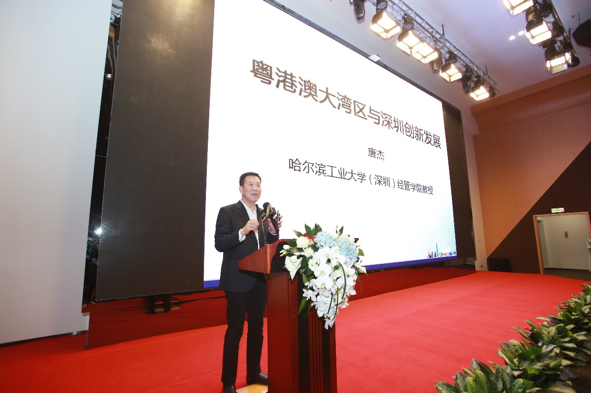 在嘉賓演講環(huán)節(jié),深圳市原副市長(zhǎng)、哈工大深圳經(jīng)管學(xué)院教授唐杰向與會(huì)嘉賓作了題為《粵港澳大灣區(qū)背景下的深圳發(fā)展新機(jī)遇》的精彩報(bào)告。唐教授回顧了深圳四十年的發(fā)展進(jìn)程,表示深圳是個(gè)由無(wú)限個(gè)傳奇故事編織起來(lái)的年輕城市,新的機(jī)遇帶來(lái)新的產(chǎn)業(yè)震蕩,正成長(zhǎng)為我國(guó)重要的經(jīng)濟(jì)、貿(mào)易、金融中心和創(chuàng)新發(fā)展的代表。