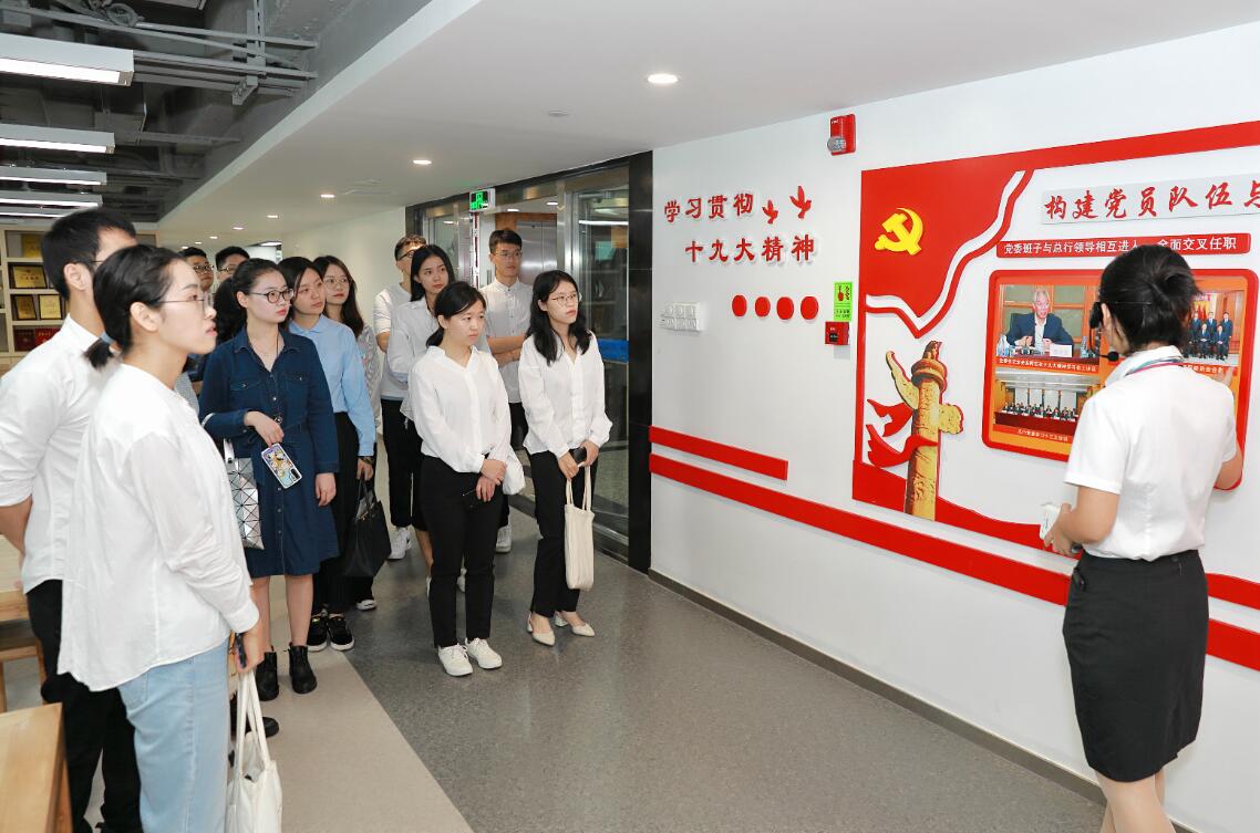 開(kāi)放日活動(dòng)的第一站總行大樓,同學(xué)們?cè)谏钲谵r(nóng)商行工作人員的帶領(lǐng)下參觀了黨群活動(dòng)中心,了解了黨組織架構(gòu)、黨建特色活動(dòng)、黨群風(fēng)采展示與員工日常休閑娛樂(lè)活動(dòng)。