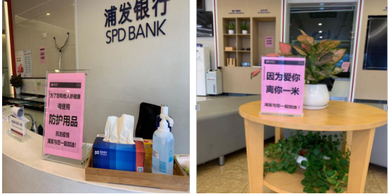 2月10日,在接到浦發(fā)深圳分行統(tǒng)一部署的復(fù)工安排后,科苑支行落實網(wǎng)點廳堂的各項防疫措施和人員復(fù)工的安全措施,在確保員工和客戶健康安全的前提下,全力保障各項金融服務(wù)需求。走進(jìn)浦發(fā),可以看到廳堂多處區(qū)域配備了口罩、消毒液、一次性手套等防控物資,在廳堂顯眼處設(shè)計擺放了“因為愛你,離你一米”等暖心提示。其中,黨員同志們帶頭在廳堂進(jìn)行宣傳指引,協(xié)助做好防護(hù)措施。