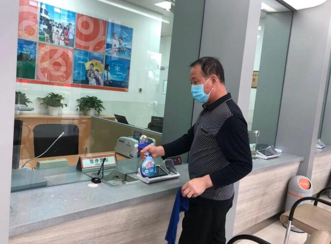 每天正式營業(yè)前,網(wǎng)點對營業(yè)大廳、自助設備、柜臺等進行360°全面無死角消毒。營業(yè)期間,每天確保廳堂環(huán)境每兩小時、自助機具每小時的頻率做好消毒工作,營造安全的業(yè)務辦理環(huán)境供客戶安心辦理。