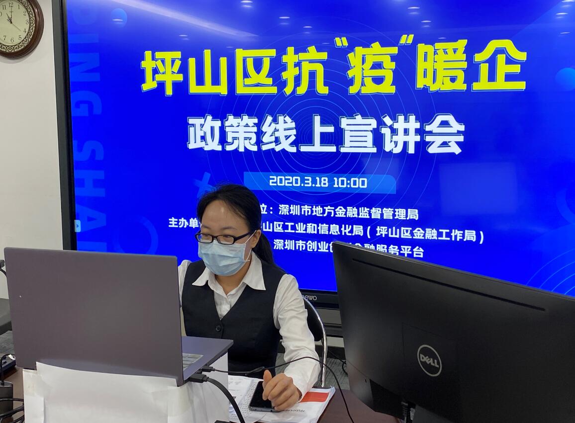 為充分支持坪山區(qū)內(nèi)企業(yè)抗擊疫情和復(fù)工復(fù)產(chǎn),攜手企業(yè)共渡難關(guān),2020年3月18日上午,深圳農(nóng)商行坪山支行通過“線上宣講”方式參加了由坪山區(qū)工業(yè)和信息化局聯(lián)合開展的抗“疫”暖企政策宣講和銀企對(duì)接系列活動(dòng)。活動(dòng)中,深圳農(nóng)商行坪山支行為區(qū)內(nèi)100多家企業(yè)詳細(xì)介紹該行在抗疫期間推出的“抗疫周轉(zhuǎn)貸”、“抗疫訂單貸”、“抗疫醫(yī)療貸”等專屬產(chǎn)品,同時(shí)也為企業(yè)推薦了“速抵貸”、“速易貸”、“稅e貸”、“通發(fā)貸”等特色產(chǎn)品。