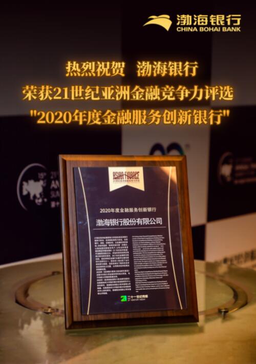 深圳新聞網·見圳客戶端2020年11月17日訊 日前,在由《21世紀經濟報道》、21財經APP主辦的2020第十五屆21世紀亞洲金融年會上,最年輕的全國性股份制商業(yè)銀行——渤海銀行獲頒“2020年度金融服務創(chuàng)新銀行獎”,這是繼去年渤海銀行在“21世紀亞洲金融競爭力”評選中首度斬獲“金融科技銀行”稱號后再度獲行業(yè)權威媒體認可。