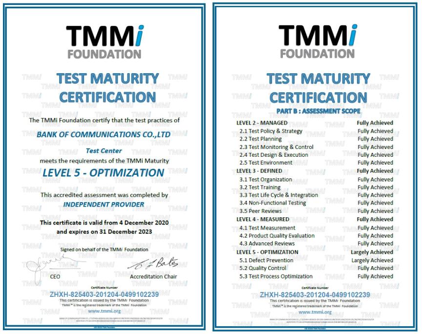 交行獲軟件測試成熟度模型集成(TMMi)五級水平認(rèn)證