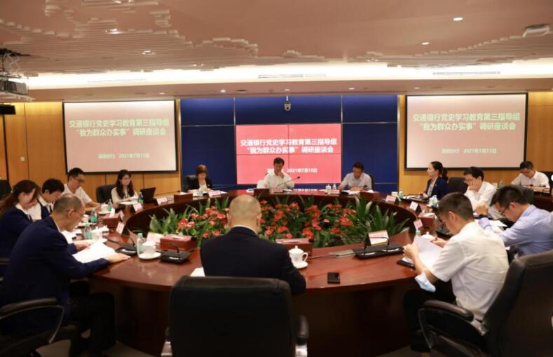 此外,交通銀行黨委黨史學(xué)習(xí)教育第三指導(dǎo)組(宣講團(tuán))與支行及部門負(fù)責(zé)人代表、黨員代表、群眾代表等干部員工圍繞分行“我為群眾辦實(shí)事”進(jìn)展情況、分類指導(dǎo)工作開展情況、需要總行為基層辦實(shí)事的意見建議等內(nèi)容進(jìn)行面對面調(diào)研座談,并通過個(gè)別訪談、查閱資料等方式對深圳分行黨委推進(jìn)黨史學(xué)習(xí)教育進(jìn)展及學(xué)習(xí)效果等情況進(jìn)行精細(xì)化指導(dǎo)、督導(dǎo)。
