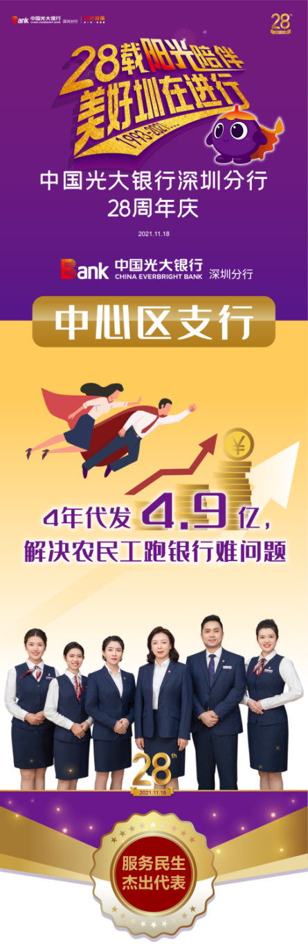 無論臺風、下雨、疫情還是節(jié)假日,只要項目有需求,中心區(qū)支行都會及時協(xié)調(diào)人員、最快時間送服務(wù)上工地。正是這種心系民生的擔當作為,讓中心區(qū)支行在深圳分行28周年“十大最美光陰故事”評選中,一舉榮獲服務(wù)民生杰出代表稱號。
