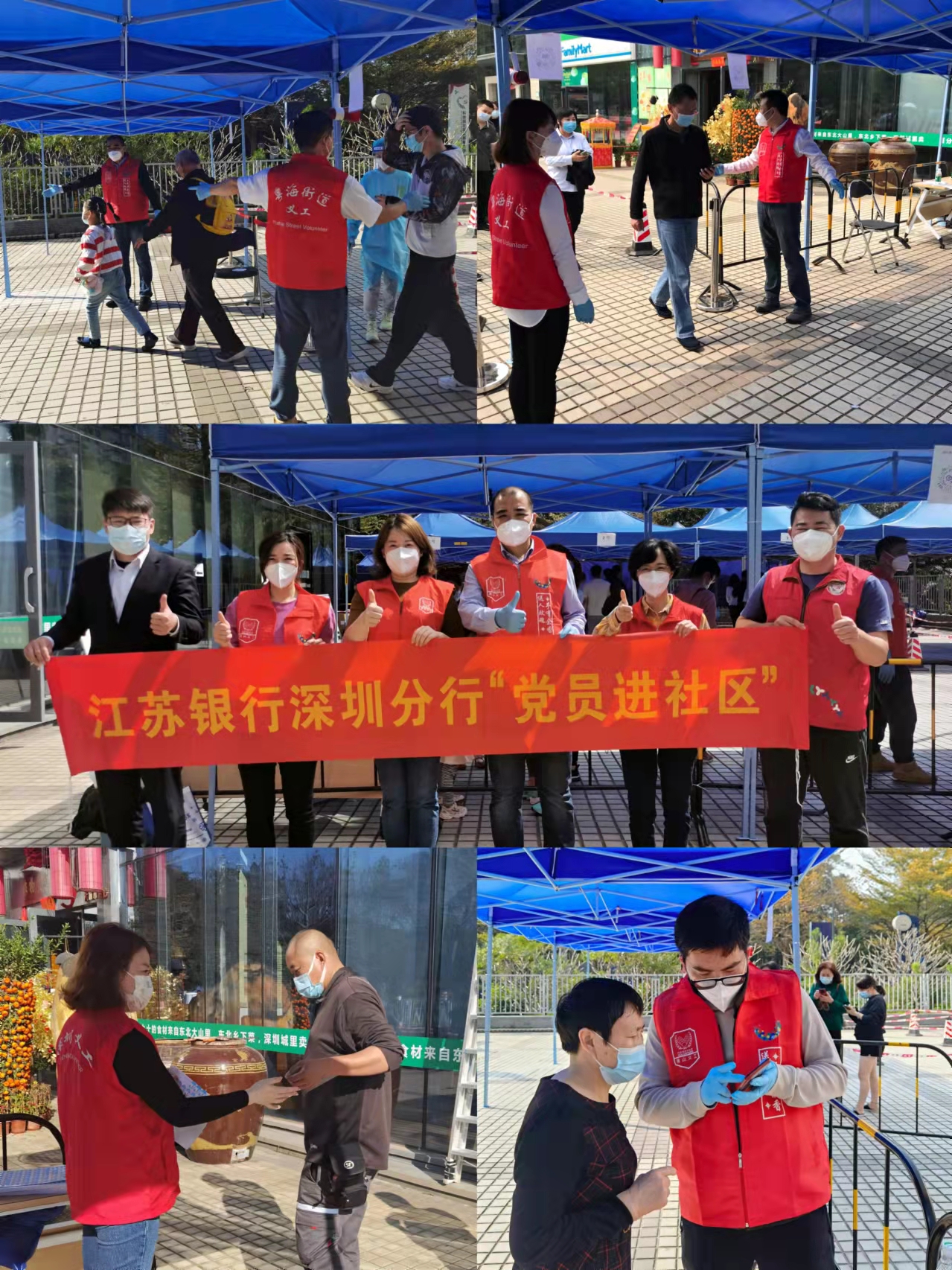 在該行黨委統(tǒng)一部署及有效組織下,江蘇銀行深圳分行營(yíng)業(yè)部、福田支行、南山支行、前海支行等基層黨組織快速響應(yīng),立即組建起由黨支部書(shū)記、支行行長(zhǎng)帶頭的志愿先鋒隊(duì)。2月中旬起,江蘇銀行深圳分行志愿先鋒隊(duì)忙碌在福田海濱社區(qū)、南山蔚藍(lán)海岸社區(qū)、高新區(qū)社區(qū)等多個(gè)核酸檢測(cè)點(diǎn),在核酸采樣現(xiàn)場(chǎng)提醒民眾查驗(yàn)健康碼、協(xié)助秩序維護(hù)、做好防疫宣傳、協(xié)助搬運(yùn)物資、進(jìn)行核酸引導(dǎo)、解答防疫問(wèn)題。與社區(qū)醫(yī)護(hù)人員一起奮斗在抗疫第一線(xiàn),用行動(dòng)踐行初心,用汗水書(shū)寫(xiě)擔(dān)當(dāng),用責(zé)任與堅(jiān)守共筑抗疫“紅色防線(xiàn)”。