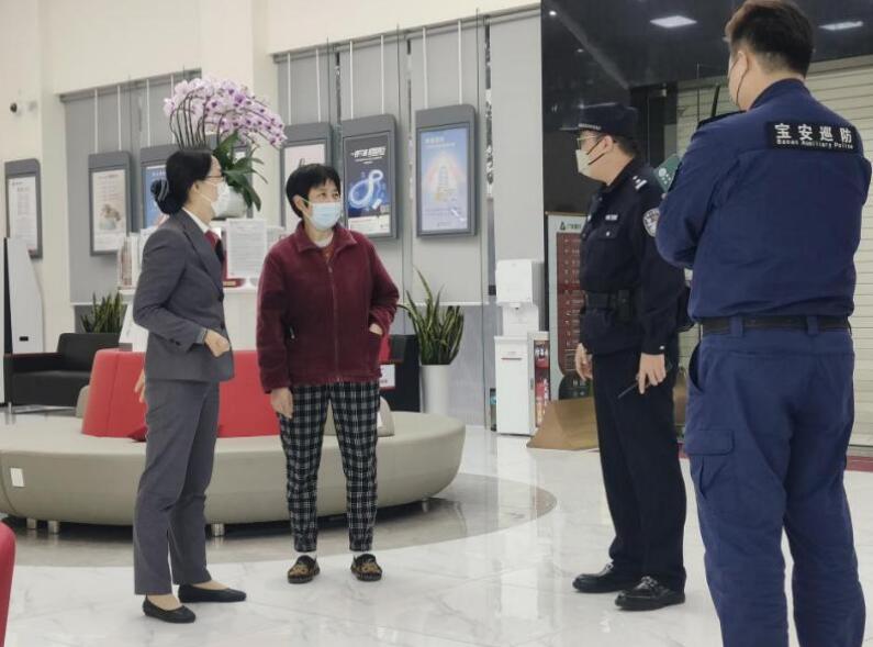 事發(fā)當(dāng)天17時左右,一位老年客戶氣喘吁吁地走進(jìn)寶安支行,神色慌張,支行員工田笑竹見狀立刻接待,并主動安撫客戶情緒。通過詢問發(fā)現(xiàn),客戶被盜用了個人信息,銀行賬戶可能存在風(fēng)險。