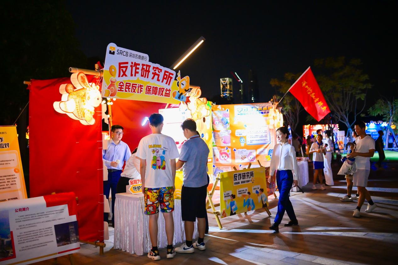 深圳農(nóng)商銀行圍繞活動主題“金融為民譜新篇,守護(hù)權(quán)益防風(fēng)險”,在金融教育中秋燈會宣傳街設(shè)置特色攤位,積極組織并開展一系列豐富多彩的金融知識普及活動,為廣大市民帶來一場有趣又有料的金融知識宣教。