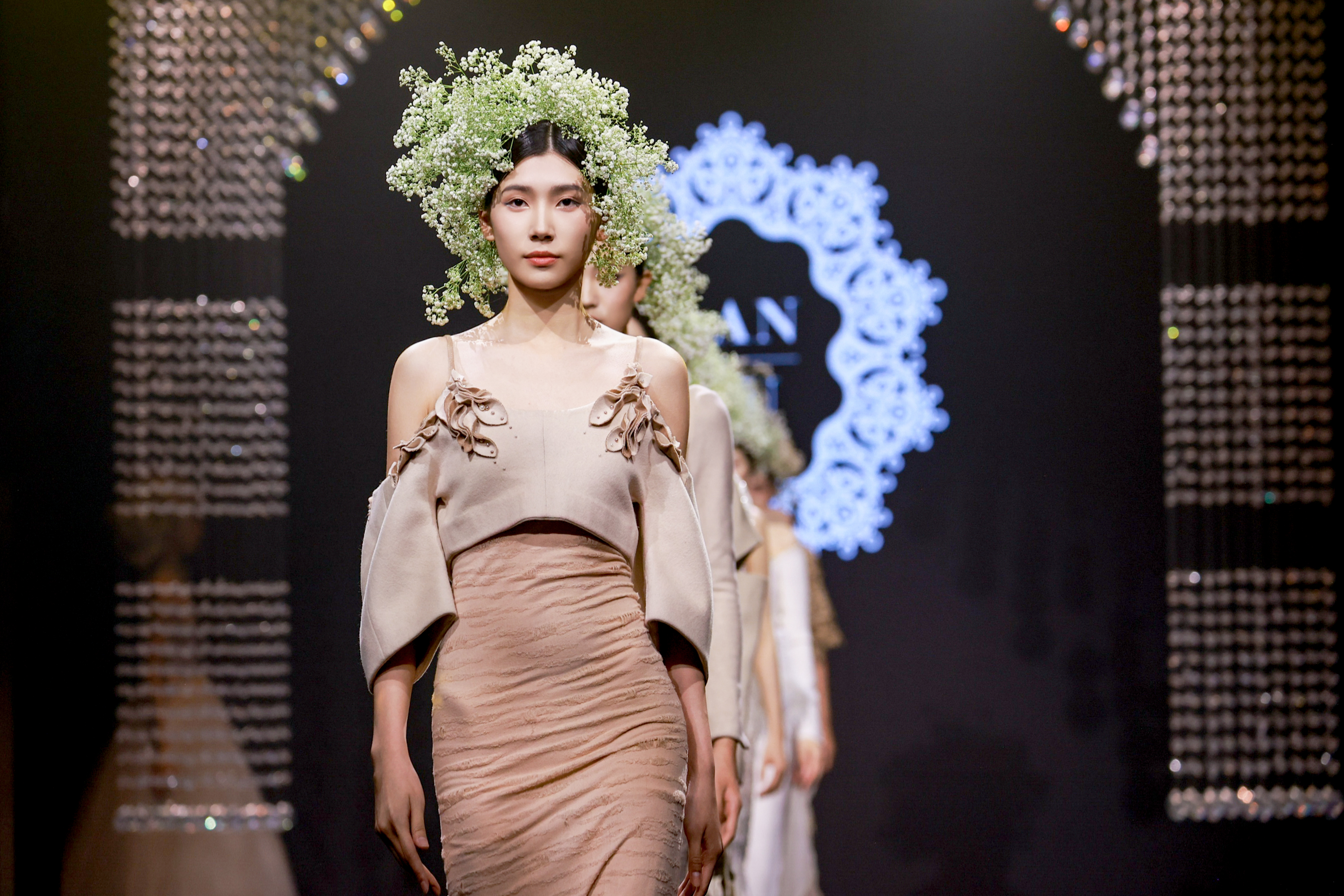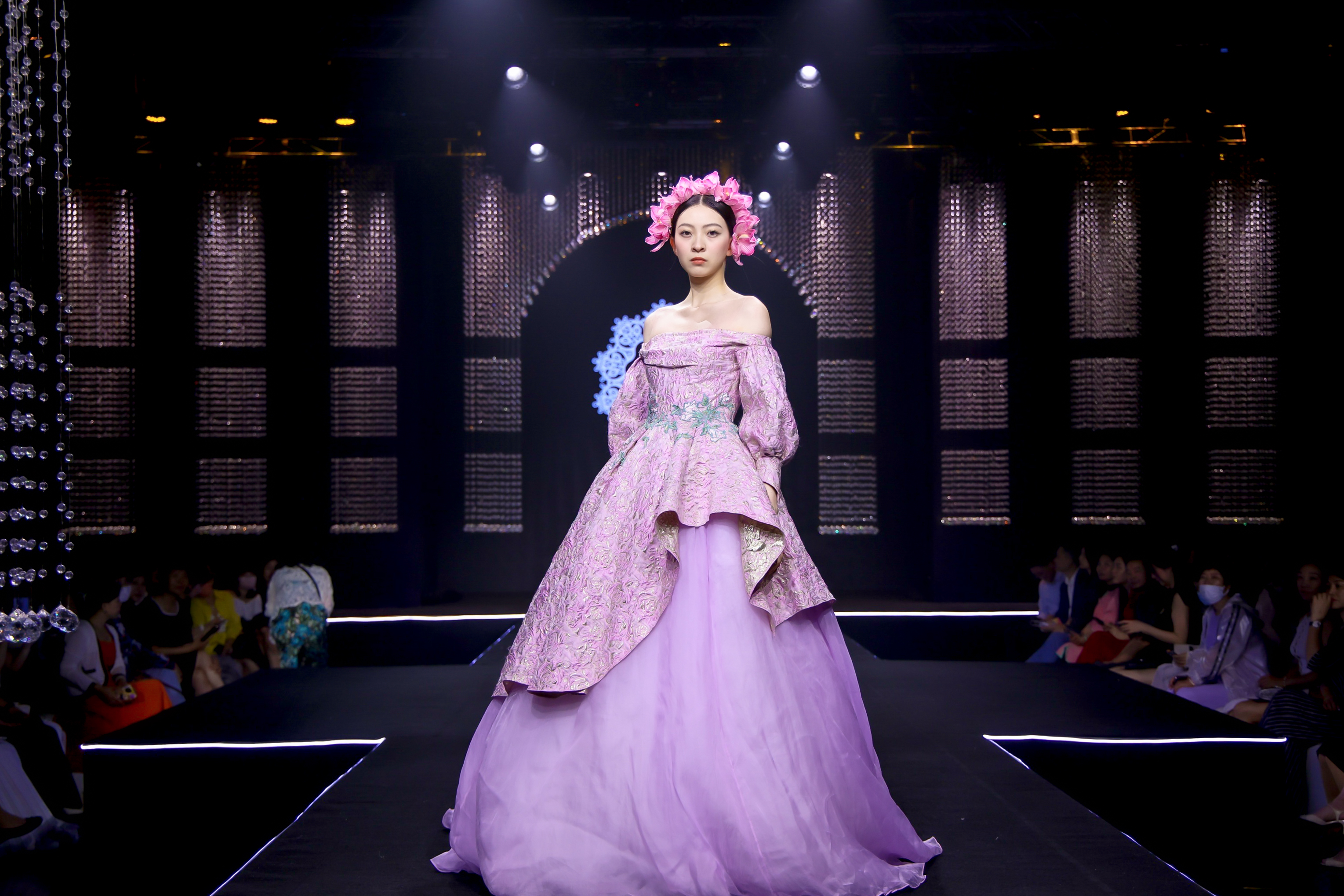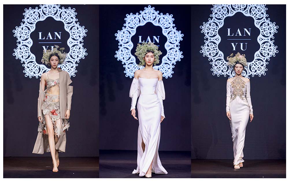 現(xiàn)場更有LANYU高定禮服展示,將中式美學(xué)意境與西式時尚剪裁完美融合,同時加重了蘇繡非遺元素的應(yīng)用比例,將更多的非遺技藝融入服飾創(chuàng)作中,呈現(xiàn)出超高藝術(shù)水準。
