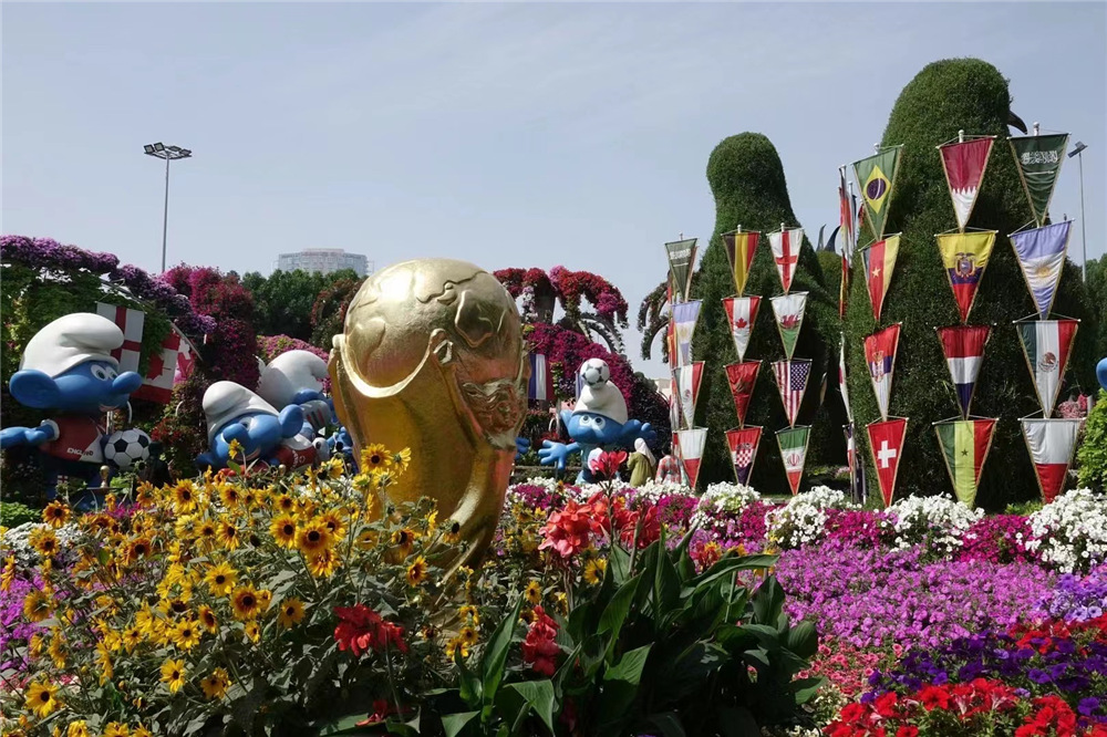 4500萬株鮮花以不同的主題分區(qū)布展,今年的主題包括野生動(dòng)物保護(hù)、卡塔爾世界杯、藍(lán)精靈等。李仁奇 攝