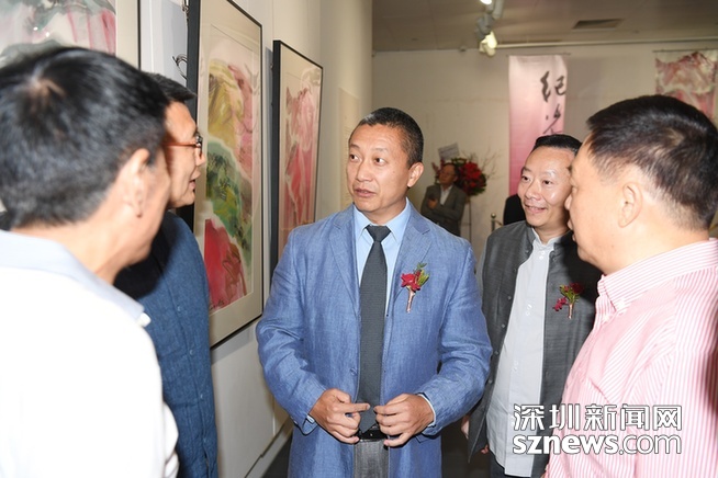 圖為香港中聯(lián)辦宣傳文體部副部長(zhǎng)朱挺(右三)出席紀(jì)光吉畫展。