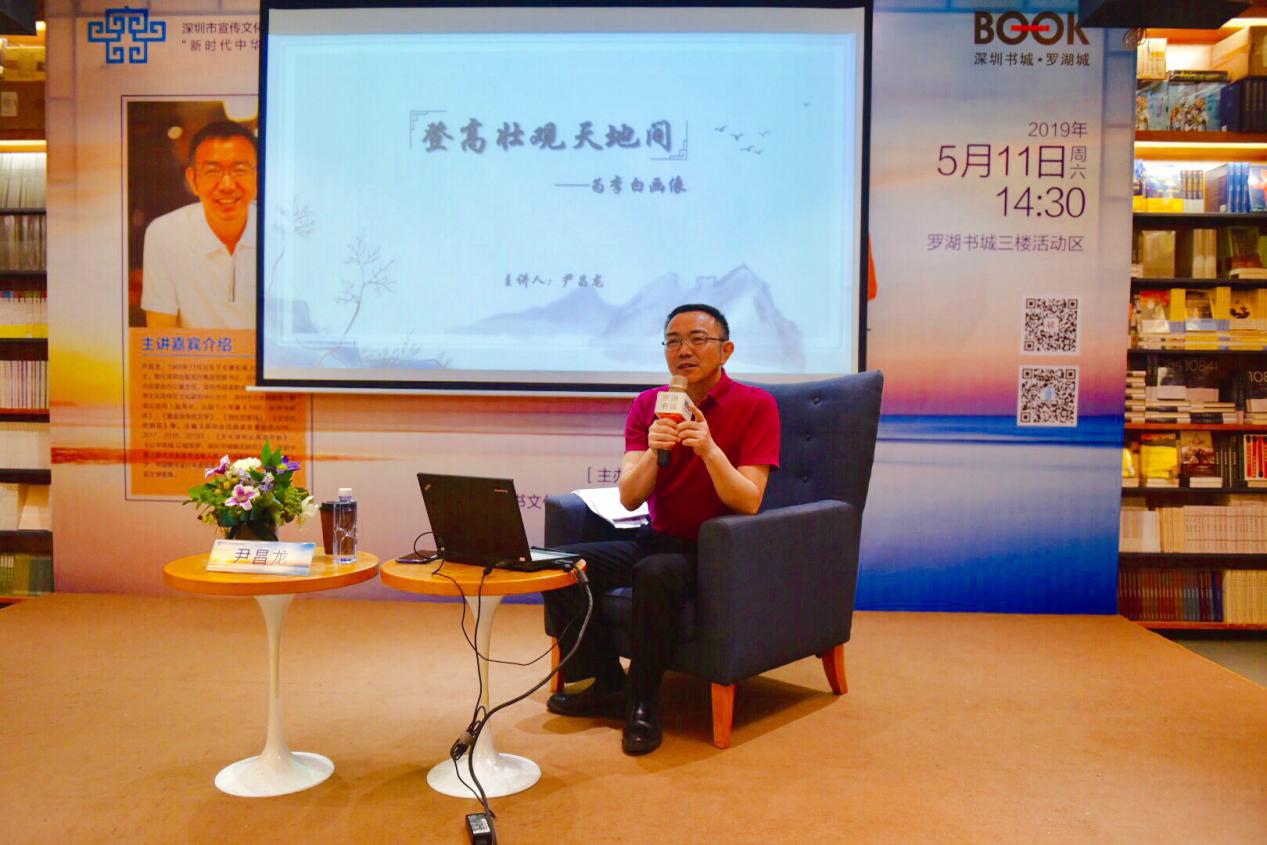 5月11日下午,“新時(shí)代中華優(yōu)秀傳統(tǒng)文化進(jìn)社區(qū)”項(xiàng)目首場(chǎng)講座之“登高壯觀天地間——為李白畫(huà)像”在羅湖書(shū)城三樓開(kāi)展。本次活動(dòng)由深圳市壹書(shū)文化傳播有限責(zé)任公司、深圳書(shū)城羅湖城主辦,特邀深圳出版發(fā)行集團(tuán)黨委書(shū)記、總經(jīng)理尹昌龍博士擔(dān)任主講嘉賓,解讀多面詩(shī)仙李白,為聽(tīng)眾奉上一場(chǎng)難得的文學(xué)盛宴。講座還未開(kāi)始,現(xiàn)場(chǎng)已座無(wú)虛席,過(guò)道上站滿(mǎn)了李白迷,聽(tīng)眾們?cè)缭缇蛠?lái)靜候著了。