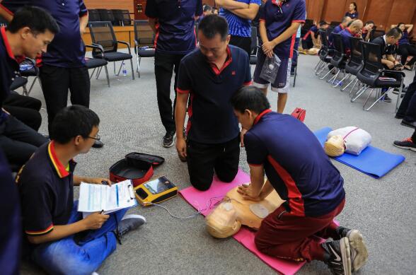 據(jù)了解,市體育中心近年來認(rèn)真貫徹市委市政府有關(guān)指示精神和市國資委、市投控公司具體部署,高度重視公益服務(wù),實實在在做好各項惠民措施落地執(zhí)行工作的結(jié)果。作為全市首批公共體育場館試點場所,市體育中心經(jīng)過多次實地調(diào)查,征詢醫(yī)務(wù)人員專業(yè)意見,本著“易找、易取、易用”的原則,選擇在鍛煉人群密集區(qū)域安裝了13臺AED設(shè)備。同時,主動邀請市急救中心專業(yè)醫(yī)師開展了體育中心全員急救培訓(xùn),100多人通過考試取得了《120現(xiàn)場醫(yī)療急救初級救護(hù)員證書》,成為體育中心現(xiàn)場醫(yī)療急救的主力,意外發(fā)生時發(fā)揮了關(guān)鍵作用,創(chuàng)造了本次“教科書式現(xiàn)場醫(yī)療急救”的現(xiàn)場醫(yī)療急救案例。