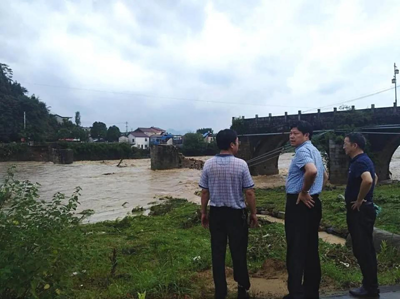 安徽省文物工作人員現(xiàn)場查看黃山鎮(zhèn)海橋受損情況(來源:國家文物局