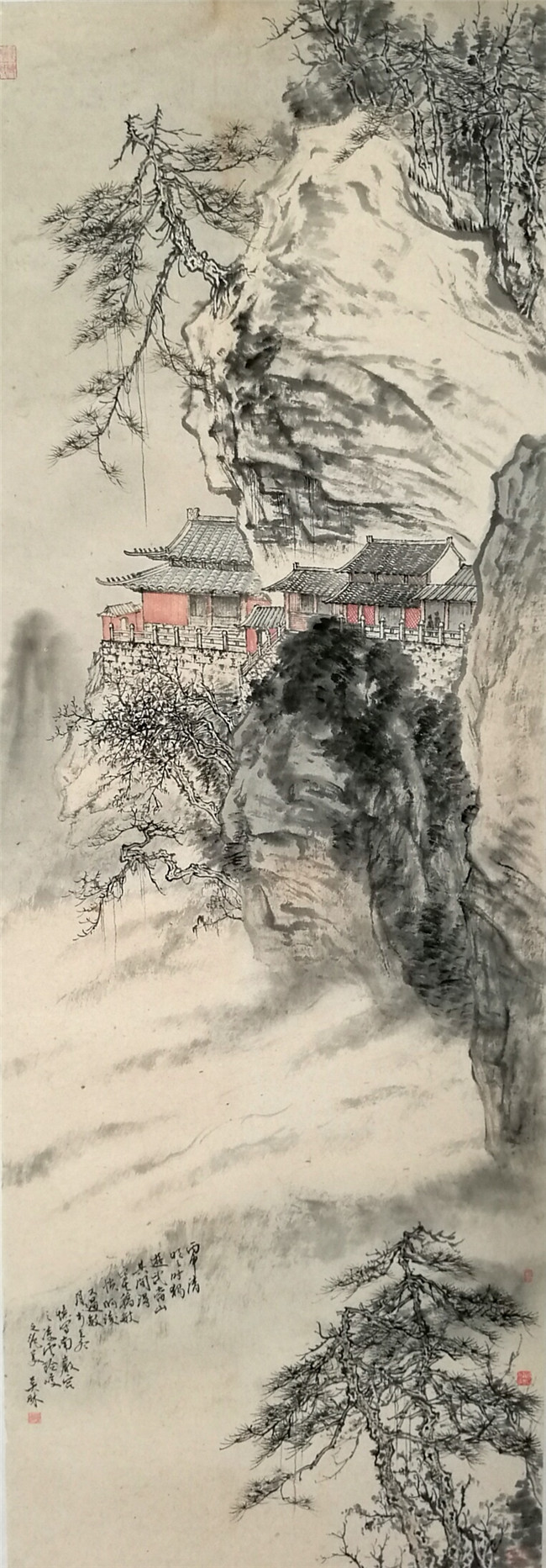 巨幅山水《武當(dāng)山煙雨》140*47cm