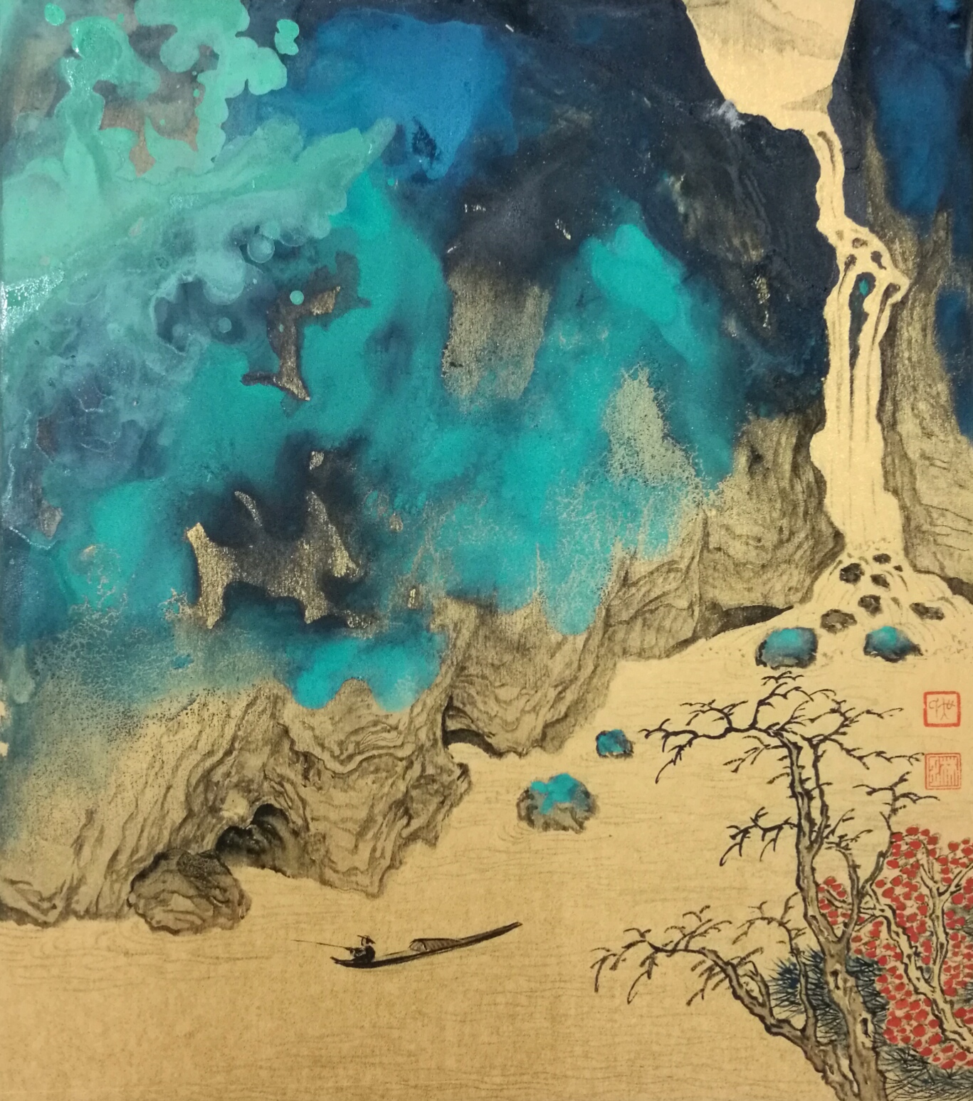 其實(shí),吳琳兄是一位才華全面的畫(huà)家,不獨(dú)山水流芳,人物花鳥(niǎo)亦強(qiáng)。見(jiàn)過(guò)他的巨幅山水,意境古拙開(kāi)張不輸前賢;見(jiàn)過(guò)他的花鳥(niǎo)魚(yú)蟲(chóng),似有白石之風(fēng)吹過(guò);見(jiàn)過(guò)他的白描觀(guān)音,覺(jué)大千風(fēng)骨猶在?!白哌^(guò)的路,終成前行的寶鑒”!看過(guò)吳琳的來(lái)路,今番小山水“來(lái)襲”,似為意料之中的事。