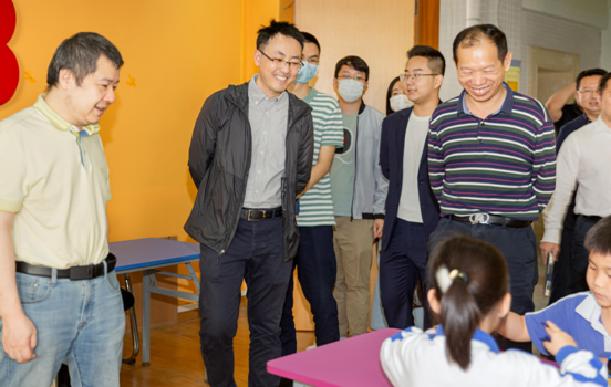 龍華區(qū)教科院黃思亮院長(zhǎng)了解圍棋課程情況。