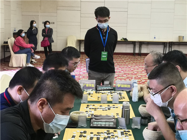 本屆聯(lián)賽在仍在抗疫的形勢下來之不易,賽事組委會非常珍惜,在防疫方面下了一番功夫。本次賽事執(zhí)行主任、著名國手梁偉棠九段介紹說:組委會在本次賽事《補(bǔ)充規(guī)定》中要求“本屆賽事因為疫情防控需要,全體人員必須佩戴口罩,掃碼入場,并全程不得摘下口罩;體溫過高者謝絕入場”。記者觀察到,現(xiàn)場的防疫落實還是比較到位的,一是在賽場入口布置了三人團(tuán)隊,加強(qiáng)了掃碼、體溫檢測、提醒大家戴口罩,凡是入場的隊員、工作人員以及觀戰(zhàn)的圍棋愛好者,都必須進(jìn)行體溫檢測,符合正常體溫的方可入場參賽;二是要求參賽隊員和工作人員戴口罩;三是加強(qiáng)賽場巡查,對沒有自覺戴口罩的在場人員進(jìn)行勸導(dǎo)??傮w來說,賽場防疫秩序良好。