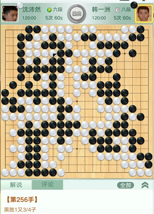 第一臺(tái)慢棋,由深圳隊(duì)的沈沛然六段執(zhí)白對(duì)陣衢州隊(duì)的韓一洲八段。開(kāi)局白優(yōu)勢(shì)。中盤出于優(yōu)勢(shì)意識(shí),一直沒(méi)有在黑棋右邊模樣里面施展手段,被黑圍起大空后局面難以掌握。中央白棋應(yīng)該對(duì)黑棋弱棋發(fā)起總攻,實(shí)戰(zhàn)貪吃黑三個(gè)殘子,導(dǎo)致局面接近。之后白棋形勢(shì)判斷有誤,招法松緩,以微弱差距落敗,沈沛然執(zhí)白1又3/4子負(fù)韓一洲。