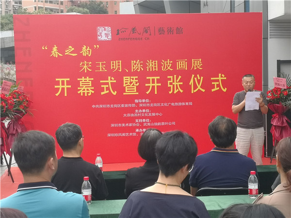 見圳客戶端?深圳新聞網(wǎng)2021年4月26日訊(記者 周錦春)《 春之韻-宋玉明陳湘波畫展》今日在龍崗區(qū)布吉街道大芬油畫村油畫路1號三樓珍風(fēng)閣畫廊隆重開幕,展期10日至5月6日結(jié)束,為期十天。據(jù)了解,是次畫展是在中共深圳市龍崗區(qū)委宣傳部、龍崗區(qū)文化廣電旅游體育局指導(dǎo)下,由大芬油畫村文化發(fā)展中心主辦,深圳珍風(fēng)閣藝術(shù)館、北京恒盛鼎國際拍賣公司共同承辦的,深圳市美術(shù)家協(xié)會、武夷山獨韻茶葉公司提供專業(yè)支持和贊助。畫展嘉賓和書畫愛好者近百人參加了開幕儀式。
