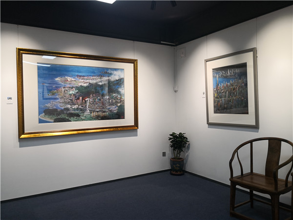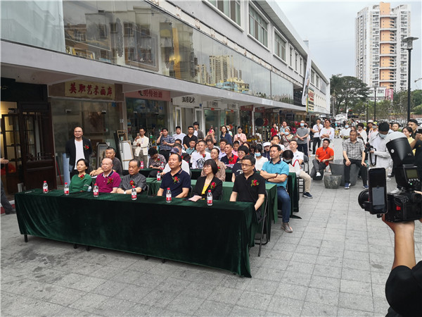 開幕儀式上,珍風(fēng)閣藝術(shù)館總經(jīng)理夏雨致辭,感謝一從嘉賓和書畫愛好者們的捧場。隨后,深圳市美術(shù)家協(xié)會名譽主席、深圳美術(shù)館原館長宋玉明先生致辭。他說,他來大芬村多次,一直關(guān)注大芬油畫村的發(fā)展和壯大,認(rèn)為大芬村為全國書畫走向市場開了先例。個人在此舉辦畫展是首次,感覺很有意義,是一次走向市場的實踐機會,值得珍惜和學(xué)習(xí),也歡迎大家批評指正。在現(xiàn)場,宋玉明老師還回答了主持人的提問。他謙虛地說,這次和陳湘波主席的聯(lián)展,有陳主席的花鳥和自己的城市山水,可以雅俗共賞。陳湘波老師因參加“兩會”未能出席開幕儀式,但在會后及時趕到現(xiàn)場,表達自己對來賓的感謝和自己對本次畫展組織的重視和支持。