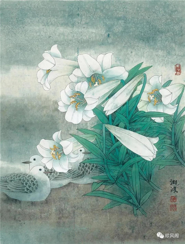 陳湘波先生的工筆花鳥畫,延伸著中國畫的本體方式,筆墨細(xì)密嚴(yán)整,設(shè)色淡雅空靈,以其深厚的造型基礎(chǔ)與超凡的色彩感受,形成了樸素、清澈、柔和、自然的個人畫風(fēng)。在具體創(chuàng)作中,他的作品既浸染出畫家的個性追求,又體現(xiàn)出強烈時代特點的新面貌。