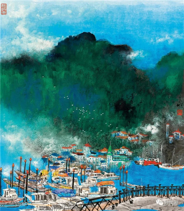 宋玉明從金陵畫派的新傳統(tǒng)跨越到城市表現(xiàn)的積彩拓墨畫法,既體現(xiàn)了現(xiàn)代化城市對于變革傳統(tǒng)的時代訴求,也體現(xiàn)了他移居深圳后這座新興城市文化對于他的深刻影響。畢竟,連續(xù)數(shù)屆的深圳水墨雙年展對于水墨在跨文化中重要作用與表現(xiàn)方法的突破,都給予他至深的思想開拓。這表明,城市山水畫已不單純是用中國畫表現(xiàn)城市的命題,而是其中能夠蘊含多少城市文化觀念與城市審美的方法,宋玉明對于城市山水畫的探索,體現(xiàn)的正是這樣一種對城市現(xiàn)代文化的思想融合性。而不拘謹(jǐn)于城市一磚一石、一街一道、一房一樓的描繪,著眼于發(fā)揮水墨與彩墨表現(xiàn)的自由性,抑或體現(xiàn)了人性、自然與現(xiàn)代城市共同作用的現(xiàn)代生活方式與人文理想。的確,純粹用中國畫或水墨畫來探索城市的現(xiàn)代化景觀表現(xiàn),也許只是淺層次的審美需求;而只有當(dāng)把山水畫作為人與自然和諧統(tǒng)一的觀念表達植入城市現(xiàn)代化的審美訴求時,城市山水畫才能真正凸顯出其深刻的美學(xué)價值。這正是我們從宋玉明的作品里能夠讀解到的他對于城市山水畫審美理想的一種勾畫。