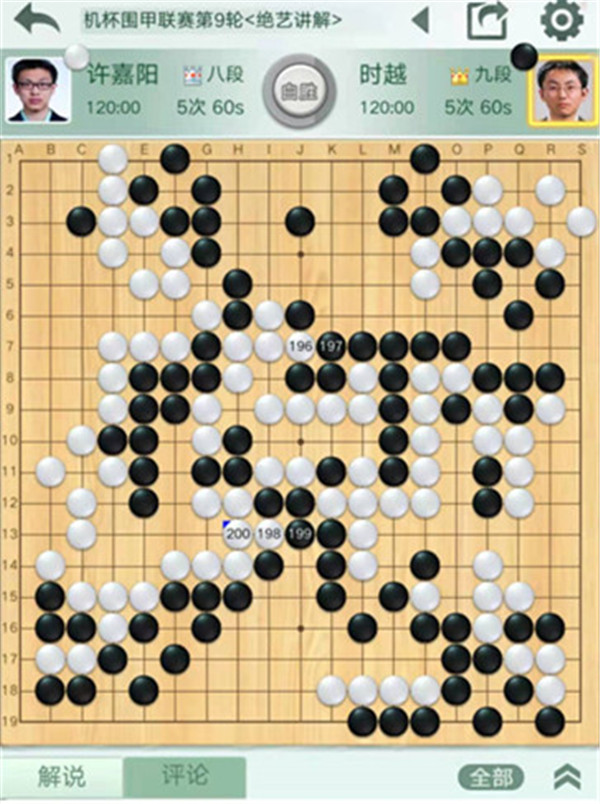 三臺陶欣然執(zhí)白對陣等級分排名29位的楊楷文。開局右邊黑棋沖擊白棋將白分斷,但是由于棋形沒有下對,反而用來斷開白棋的棋筋被吃,白棋早早進入勝勢。這一盤是此輪深圳龍華隊唯一勝局,不易!為陶欣然點贊!