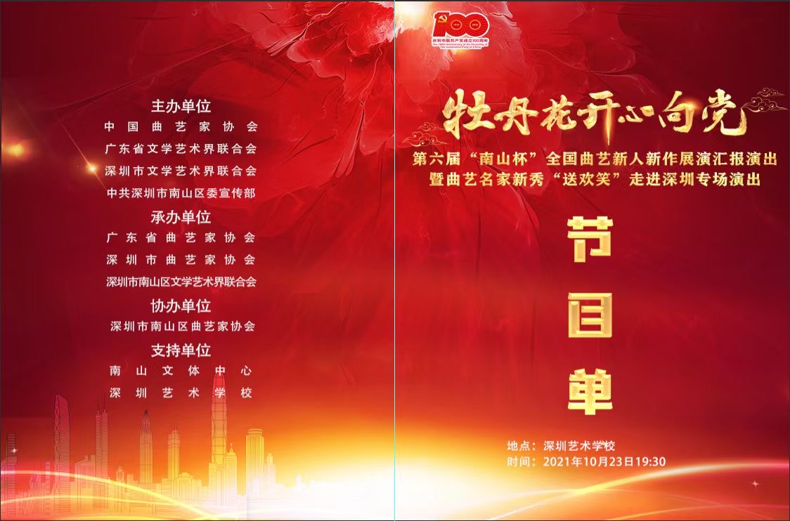 讀特客戶端·深圳新聞網(wǎng)2021年10月24日訊(記者 張俊達(dá))23日,深圳曲藝界迎來(lái)大日子。“牡丹花開(kāi)心向黨”——第六屆“南山杯”全國(guó)曲藝新人新作展演匯報(bào)演出暨曲藝名家新秀“送歡笑”走進(jìn)深圳專場(chǎng)演出在深圳南山藝術(shù)學(xué)校舉行。