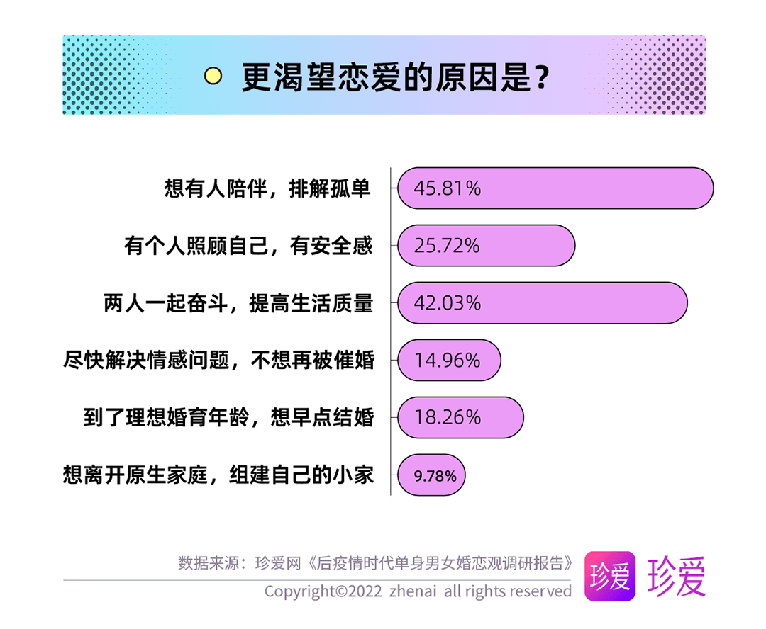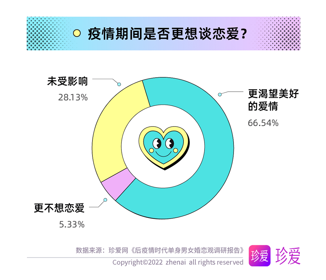 讀特客戶端·深圳新聞網(wǎng)2022年6月14日訊(記者 葉梅)疫情讓人們的生活狀態(tài)、工作方式和個(gè)人習(xí)慣都發(fā)生了顯著變化,而對單身人群而言,疫情三年他們對感情的態(tài)度又有哪些改變?現(xiàn)在的他們?nèi)绾慰创H密關(guān)系?珍愛網(wǎng)聚焦后疫情時(shí)代單身人群的婚戀觀發(fā)起調(diào)研,探究疫情期間單身人群在戀愛期待、擇偶標(biāo)準(zhǔn)、脫單難度等方面的變化。本次調(diào)研共回收問卷9862份。