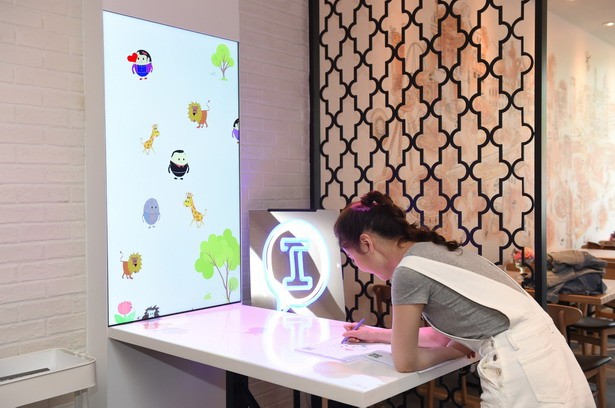 餐廳中心區(qū)域設(shè)置了一款風(fēng)靡全球的“奇妙涂鴉”互動(dòng)游戲,只需用蠟筆或微信小程序涂鴉,就能親眼見(jiàn)證自己填色的靜態(tài)畫(huà)像活靈活現(xiàn)地走入桌面走上墻壁,人人均可當(dāng)一回“神筆馬良”,用創(chuàng)意打開(kāi)無(wú)限想象,邊吃邊玩,將用餐變成一種愉悅的享受。