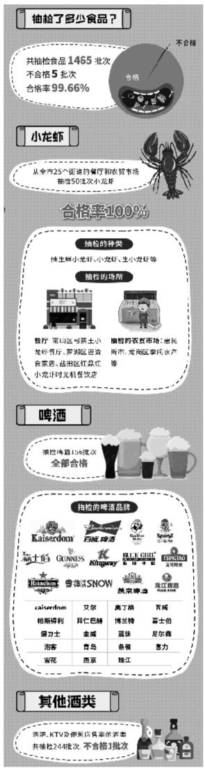 據(jù)了解,在世界杯足球賽開賽前夕,深圳市食藥監(jiān)局就通過網(wǎng)絡(luò)調(diào)查活動對市民票選出的熱門宵夜食品進(jìn)行了抽檢,包括燒烤類食品、啤酒、小龍蝦、零食炒貨堅(jiān)果制品、膨化食品、醬鹵肉制品,同時對備受球迷歡迎的酒吧等場所售賣的酒類產(chǎn)品進(jìn)行抽檢。行動共抽檢樣品1465批次,發(fā)現(xiàn)不合格樣品5批次,合格率達(dá)99.66%。