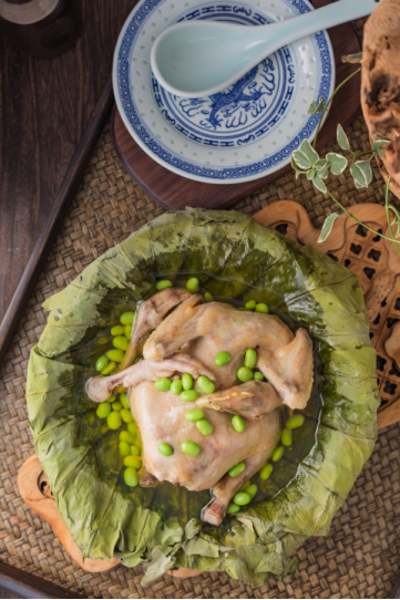 “池塘十里盡荷塘,姊妹朝來(lái)采摘忙,不摘荷花摘荷葉,飯包荷葉比花香?!鼻迥┟癯醯倪@首詞,表明了人們對(duì)用荷葉制肴的喜好。選用肉質(zhì)細(xì)嫩的仔雞,以荷葉包裹蒸熟,松軟適口,呈現(xiàn)原汁原味的鮮美,融合荷葉的幽幽清香,細(xì)細(xì)品味,仿佛回到夢(mèng)里水鄉(xiāng)。