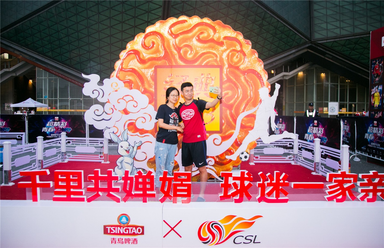 在賽場外,中超贊助商青島啤酒加碼快樂元素,在當中秋之夜攜手一同為球迷呈獻豐盛的歡聚盛宴,巨型月餅裝置、cosplay嫦娥玉兔、定制啤酒月餅、球迷霸王餐等互動體驗,為中超比賽注入無限激情與活力。