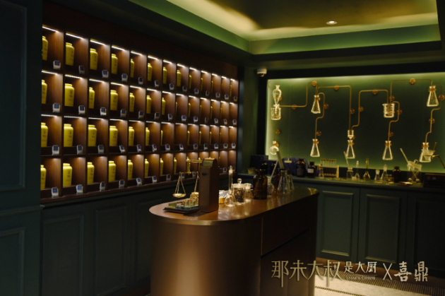如今來到深圳,以“味道實驗室”為主題,大玩品牌跨界,南方粵菜,北方水餃,新派茶飲,融合出了一家特別的餐廳。一進餐廳,化學公式,實驗玻璃瓶,滴管,試驗臺,藍綠色英倫味道十足的化學實驗室,重點是,你根本找不到進餐廳的門。這種speak easy風格都會以這種“掛羊頭賣狗肉”的方式呈現(xiàn),而開門機關就如玩寶藏游戲一般需要自己去發(fā)現(xiàn)。觸碰機關,才能開啟通往美食的大門!
