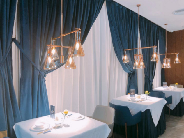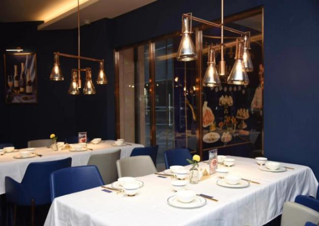 密室的大門,區(qū)隔開的完全是兩種不同的風格。實驗室風格VS LOFT風,密室玩的是神秘的科學實驗室氛圍,大堂則是完全敞亮通透的空間,整體以大叔紳士藍、玫瑰金為主色調(diào),線條利落的天花板吊頂,吊燈暖暖的光線投射在擺放講究的餐具上,浪漫又小資,再搭配大理石紋水泥地磚、木紋墻藝等,讓整個空間保持和諧統(tǒng)一的氛圍,又展現(xiàn)出豐富的層次感。廚房直接采用明檔的空間設計,衛(wèi)生情況一目了然,除了大堂,還設有特色VIP室和半透明宴會廳,適合有重要會談和生日宴會需求的朋友。