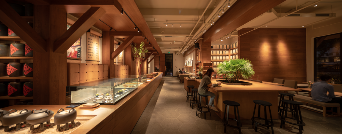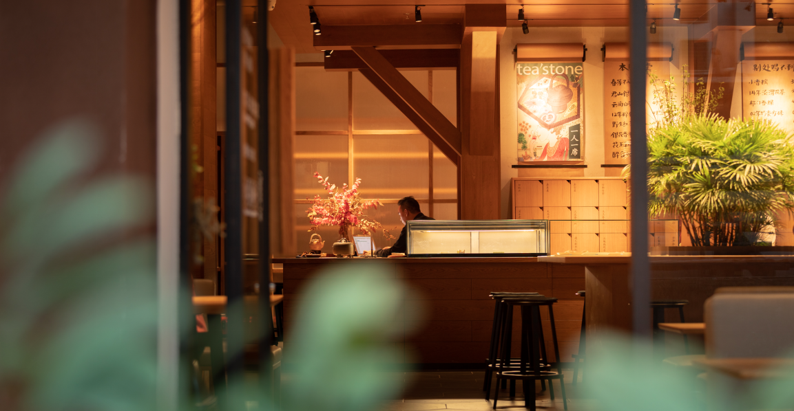 “一個溫暖的會客廳”是tea’stone對所構(gòu)建的茶空間的定義,也是他們對其所提倡的茶美學生活的表達之一。tea’stone團隊有著深厚的空間美學造詣,在傳統(tǒng)的基礎上做減法,沉浸式的開放空間,選取東方美學的核心因素,以傳統(tǒng)梁柱,斗拱和椽檁,勾勒出當代簡約的茶空間,呈現(xiàn)出精制溫暖的格調(diào),家私、櫥窗、花藝凡見種種,皆散發(fā)著和諧雅致的美感。簡潔,現(xiàn)代,精致,溫暖,再結(jié)合“一人一席”的飲茶方式,讓喝茶這件事完整靈動,并且稱得上具有美感的生活方式。難怪能看到越來越多的人們抱著筆記本坐在tea’stone里面獨處、辦公、會友?,F(xiàn)代中國人的“第三空間”從此又有了新的選擇。