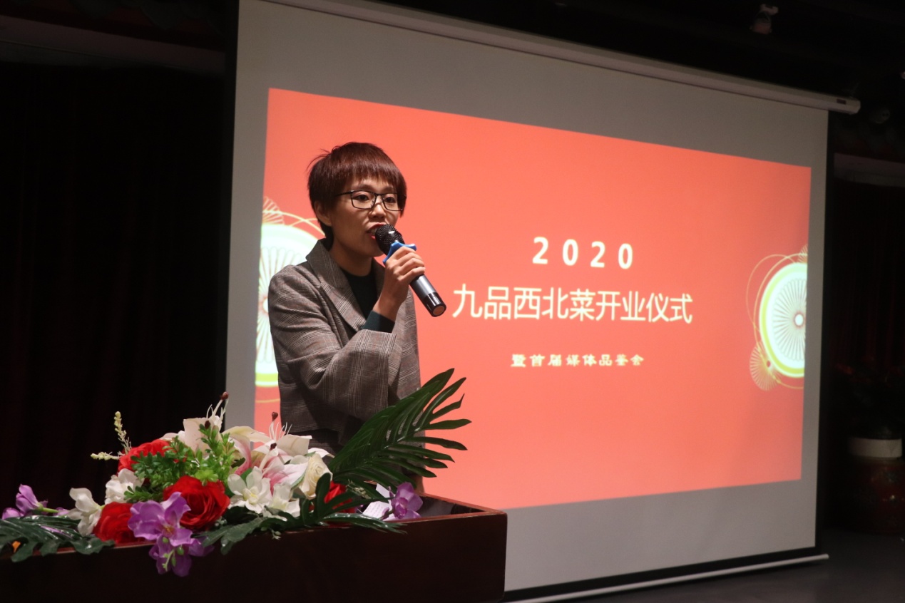 本屆媒體品鑒會由“九品西北菜”創(chuàng)始人兼出品總監(jiān)賈淑萍女士歡迎致辭,并且分享了關于品牌創(chuàng)始背后的故事?!熬牌肺鞅辈恕笔莾A金河建材集團之力,萃取20多年用心精華,嚴格把控菜品供應鏈,歷史20年,打造出來的新品牌。