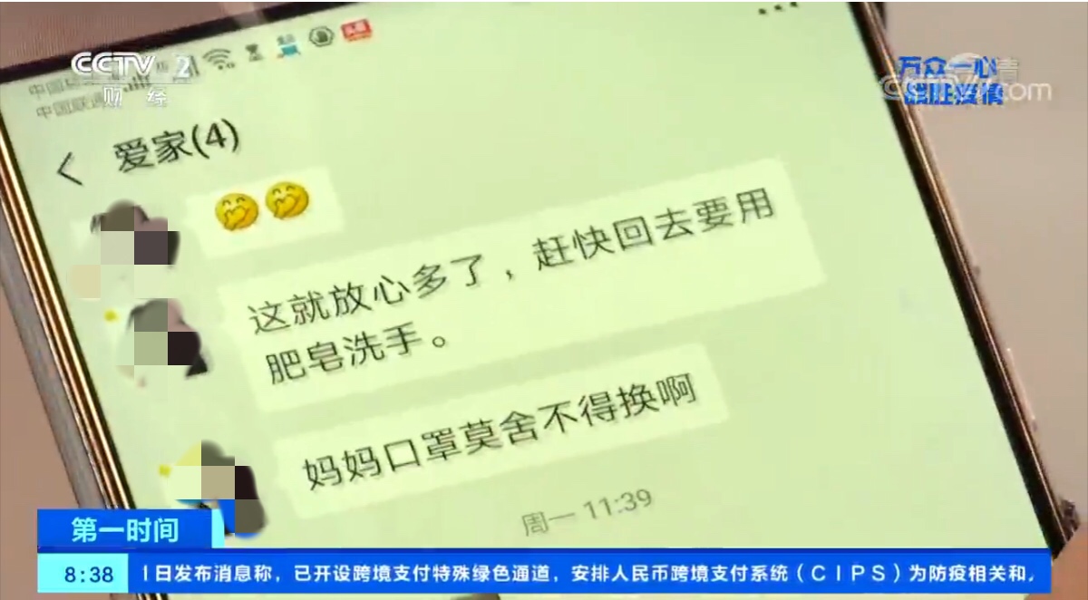 除了緊張忙碌的工作,鐘天平更擔(dān)憂1000公里之外的家人。他的岳父母生活在湖北黃岡市下轄的浠水縣。在鐘天平的微信里有一個叫愛家的群,里面就是岳父岳母和他兩口子,互相囑咐戴好口罩、注意安全,成了這個春節(jié)最重要的祝福語。